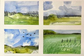 Week 47's colours are Blue Sky, Taupe, Spring Green & Grass Green