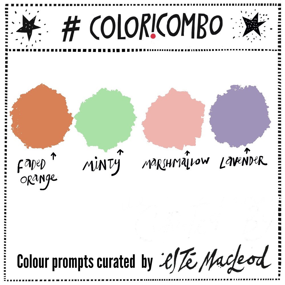 The colours this week are Faded Orange, Minty, Marshmallow & Lavender. Use the colours along with a contrasting dark and neutral light colour if you wish. Create an artwork in any medium or style.