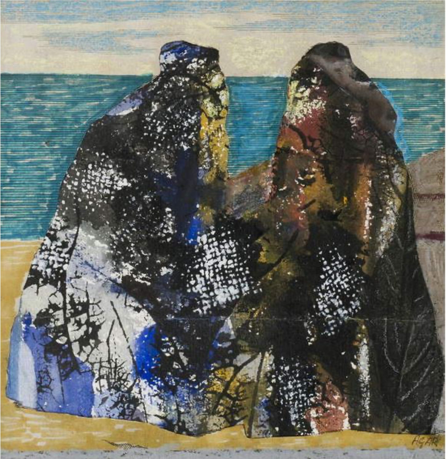 ‘Two Old Men in the Sea”, mixed media collage on paper, Eileen Agar, undated
