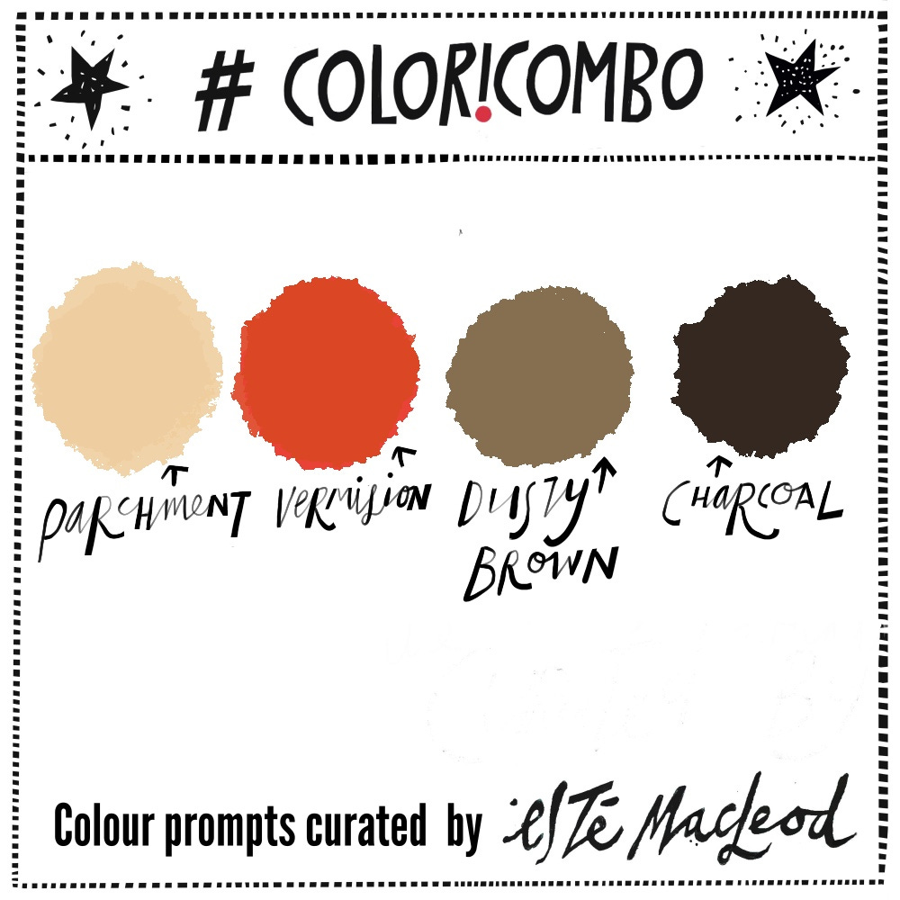 The colours this week are Parchment, Vermillion, Dusty Brown and Charcoal. Use the colours along with a contrasting dark and neutral light colour if you wish. Create an artwork in any medium or style.