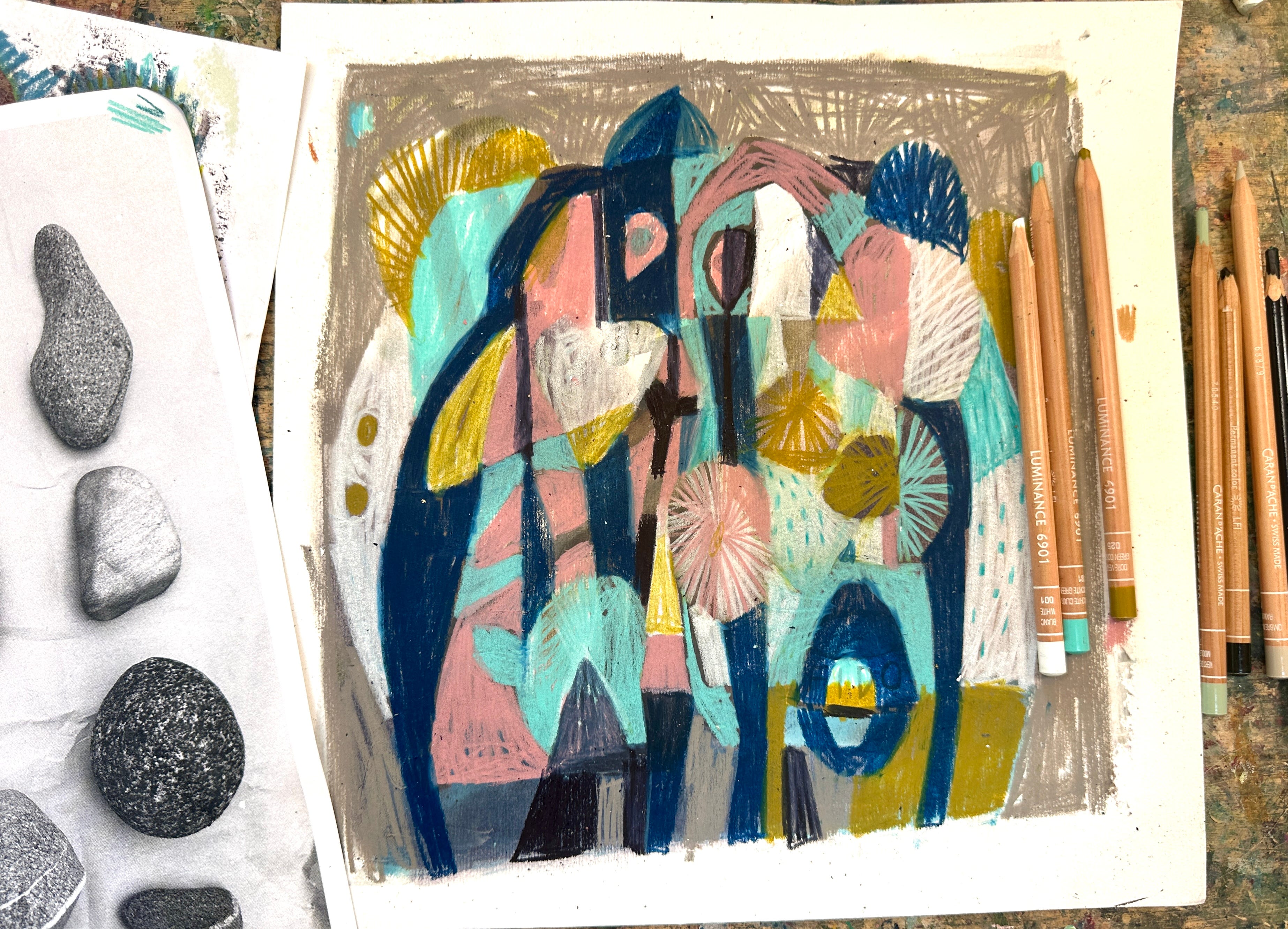 For contributing subscribers I recorded a video demonstration with this week’s colours where I altered an old watercolour painting using Luminance colour pencils.