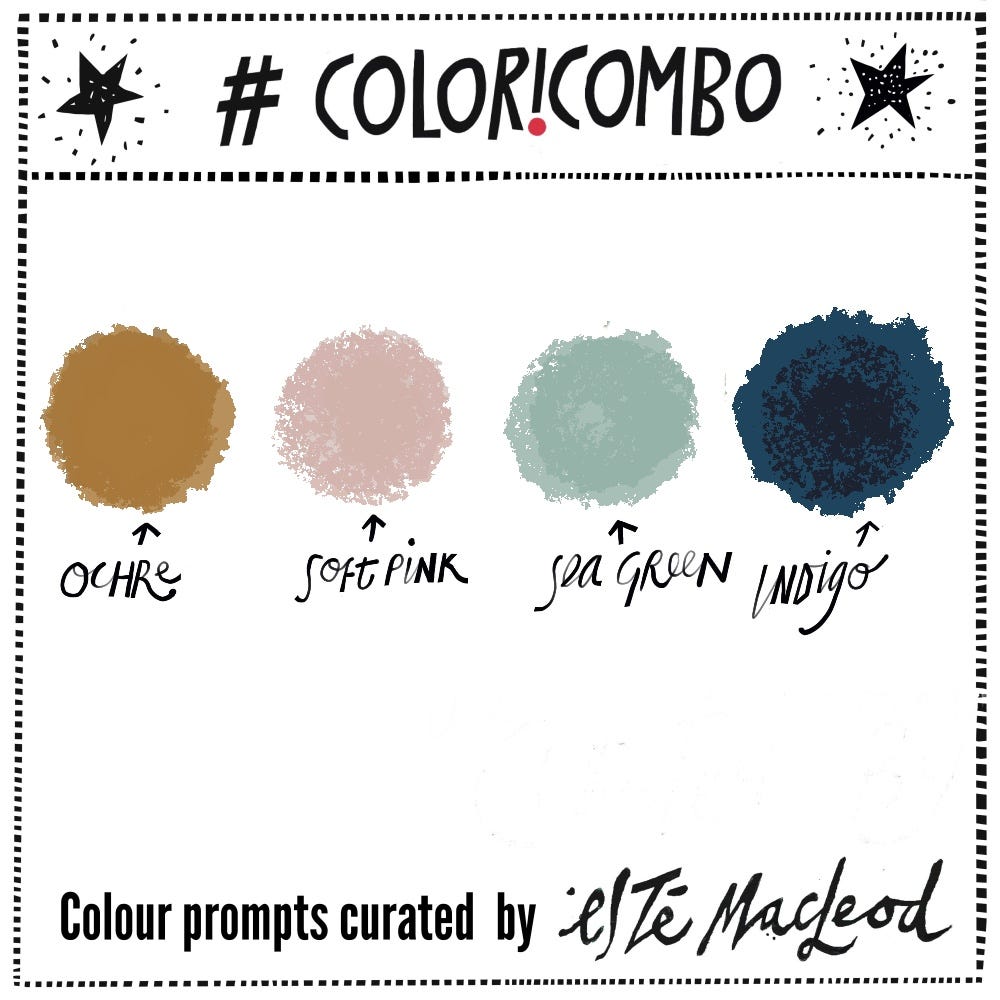 The colours this week are Ochre, Soft Pink, Sea Green & Indigo. Use the colours along with a contrasting dark and neutral light colour if you wish. Create an artwork in any medium or style.