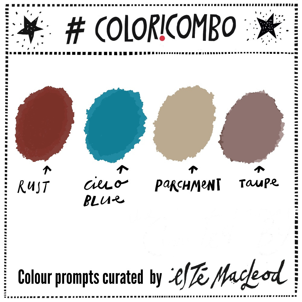 The colours this week are Rust, Cielo Blue, Parchment & Taupe. Use the colours along with a contrasting dark and neutral light colour to create an artwork in any medium or style. Share this post with someone who likes colour and might enjoy a weekly dollop of colour and creativity.
