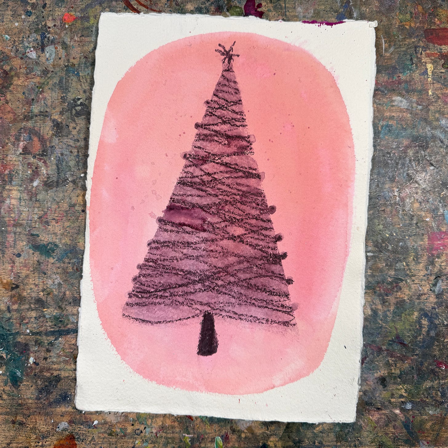 I used a Neocolor II crayon in the Kaput Mortum colour on a previously painted and dried pink watercolour background.