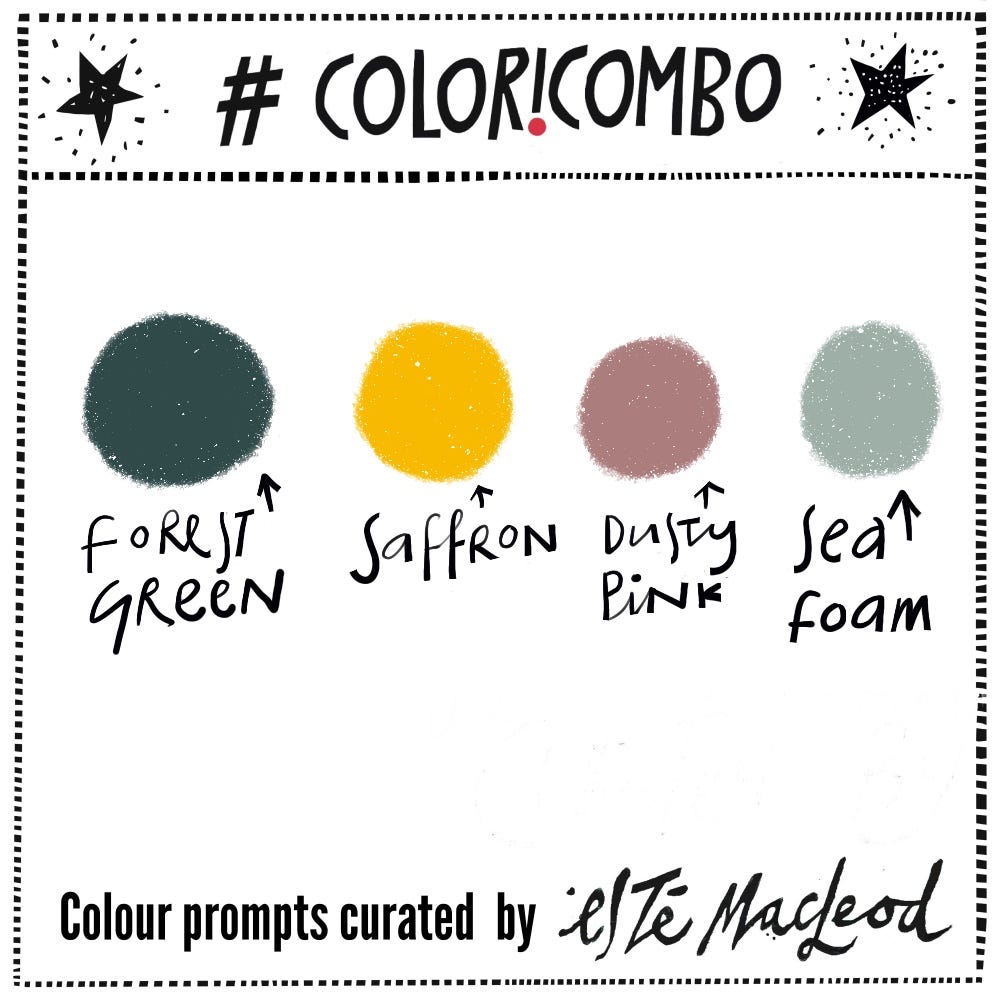 The colours for this weeks prompt are Forest Green, Saffron, Dusty Pink & Sea Foam. Use the #coloricombo colours along with any neutral light and dark colour to create an artwork in any medium and style.