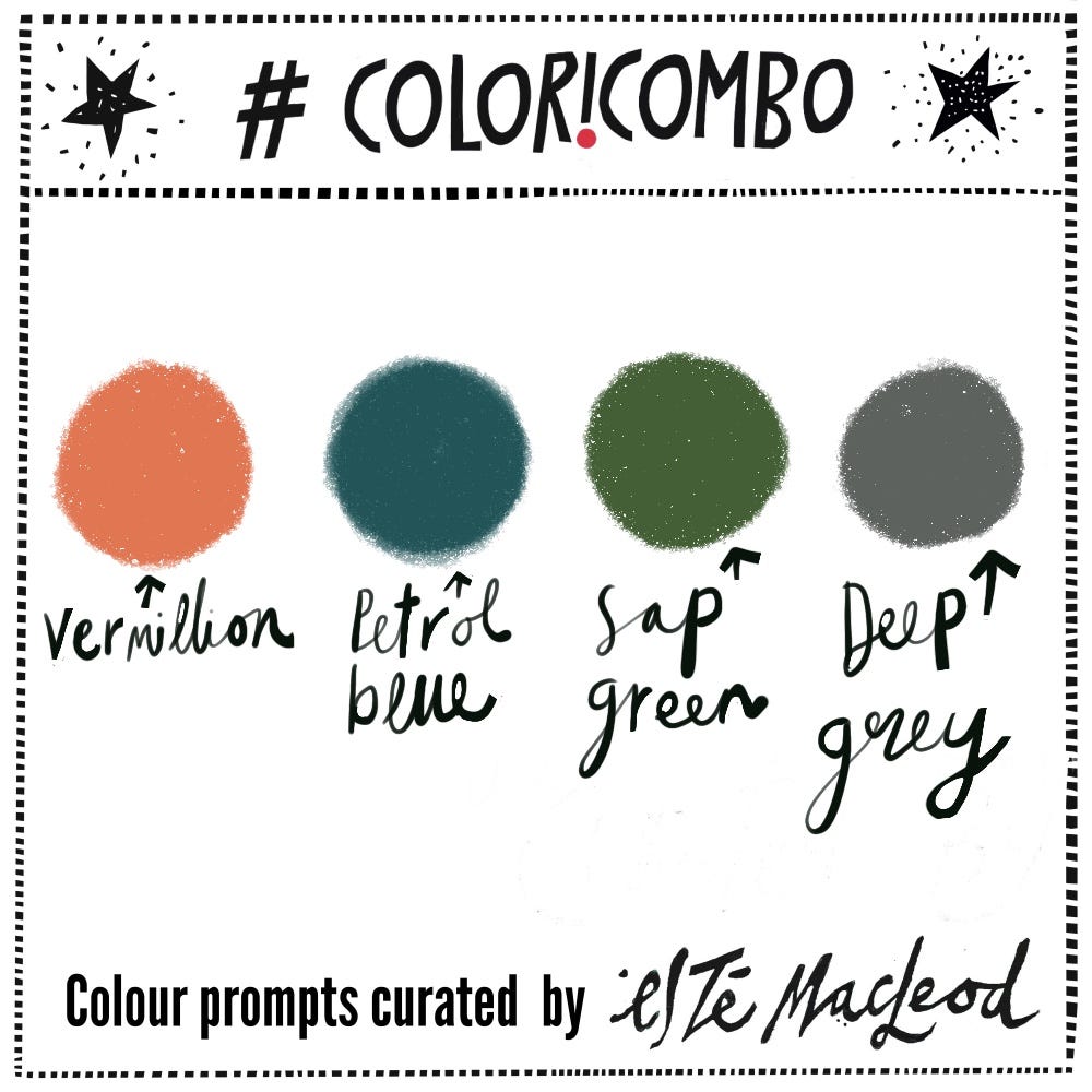 For Week 34 the colours are Vermillion, Petrol Blue, Sap Green & Deep Grey