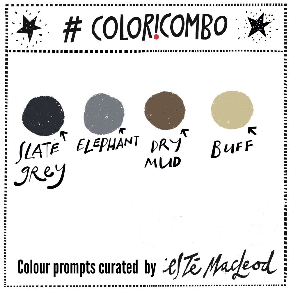 Week 2 is Slate Grey, Elephant, Dry Mud and Buff