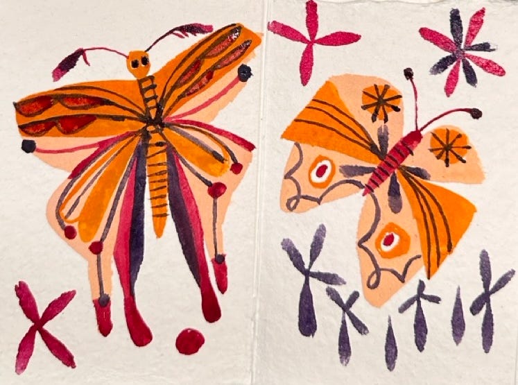 There’s a demonstration of this artwork where I painted two butterflies below, for subscribers only.
