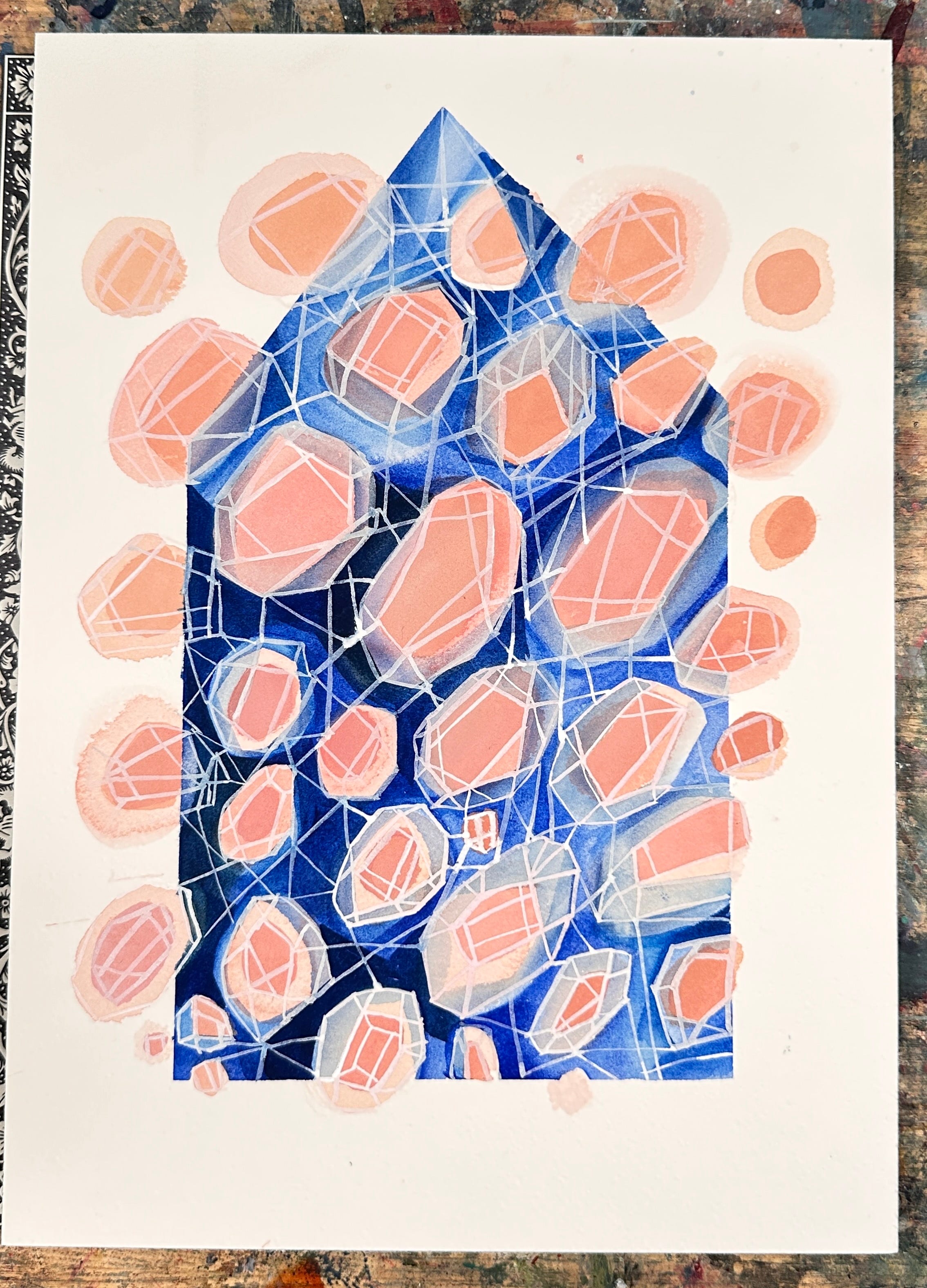 I created an artwork in blues and pinks and have added a video of the process exclusively for contributing subscribers. This is an idea for playing with colour without concerning yourself with the outcome: it’s about the process.