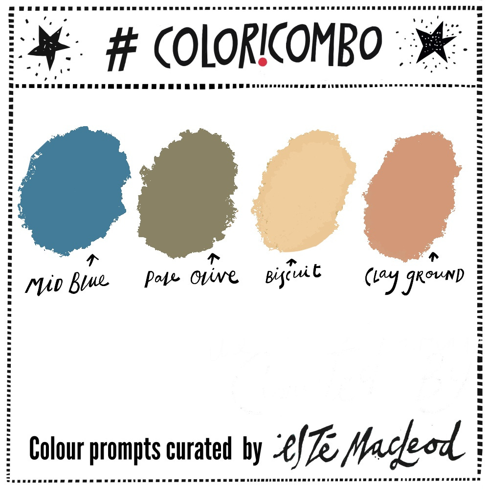 The colours this week are Mid Blue, Pale Olive, Biscuit & Clay Ground. Use them along with a contrasting dark and neutral light colour to create an artwork in any medium or style. Know someone who might enjoy a weekly dollop of colour and creativity? Why not share this post with them?