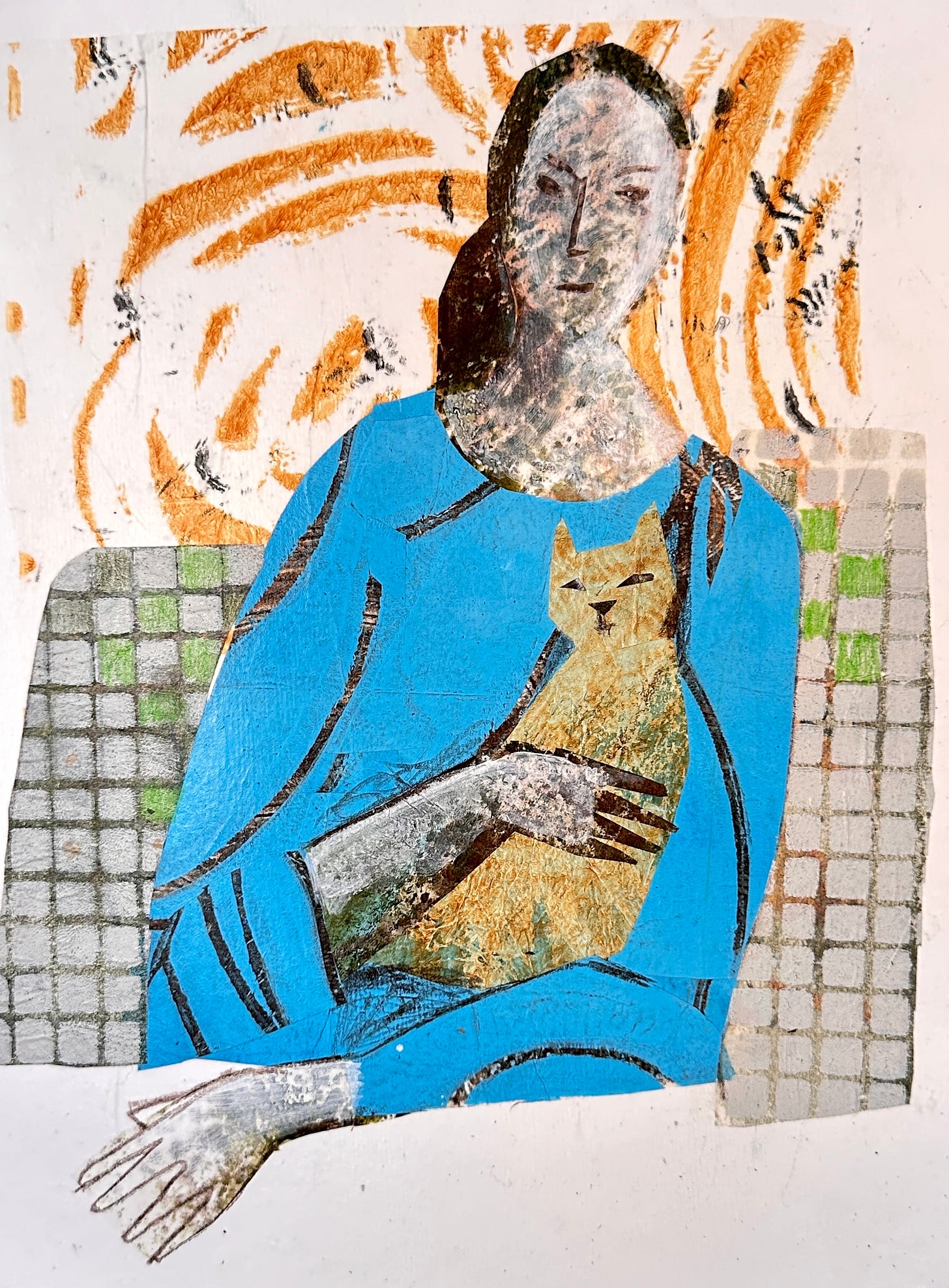 On International Woman’s Day I’m sharing an impromptu collage featuring a woman holding a cat using this week’s #coloricombo colours, Turmeric, Aqua, Pea Green & Deep Olive.