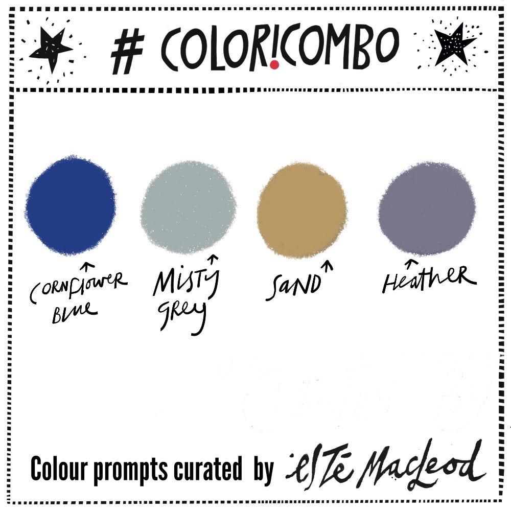 The chosen colours this week are Cornflower Blue, Misty Grey, Sand & Heather. Use the colours along with a contrasting dark and neutral light colour if you wish. Create an artwork in any medium or style.