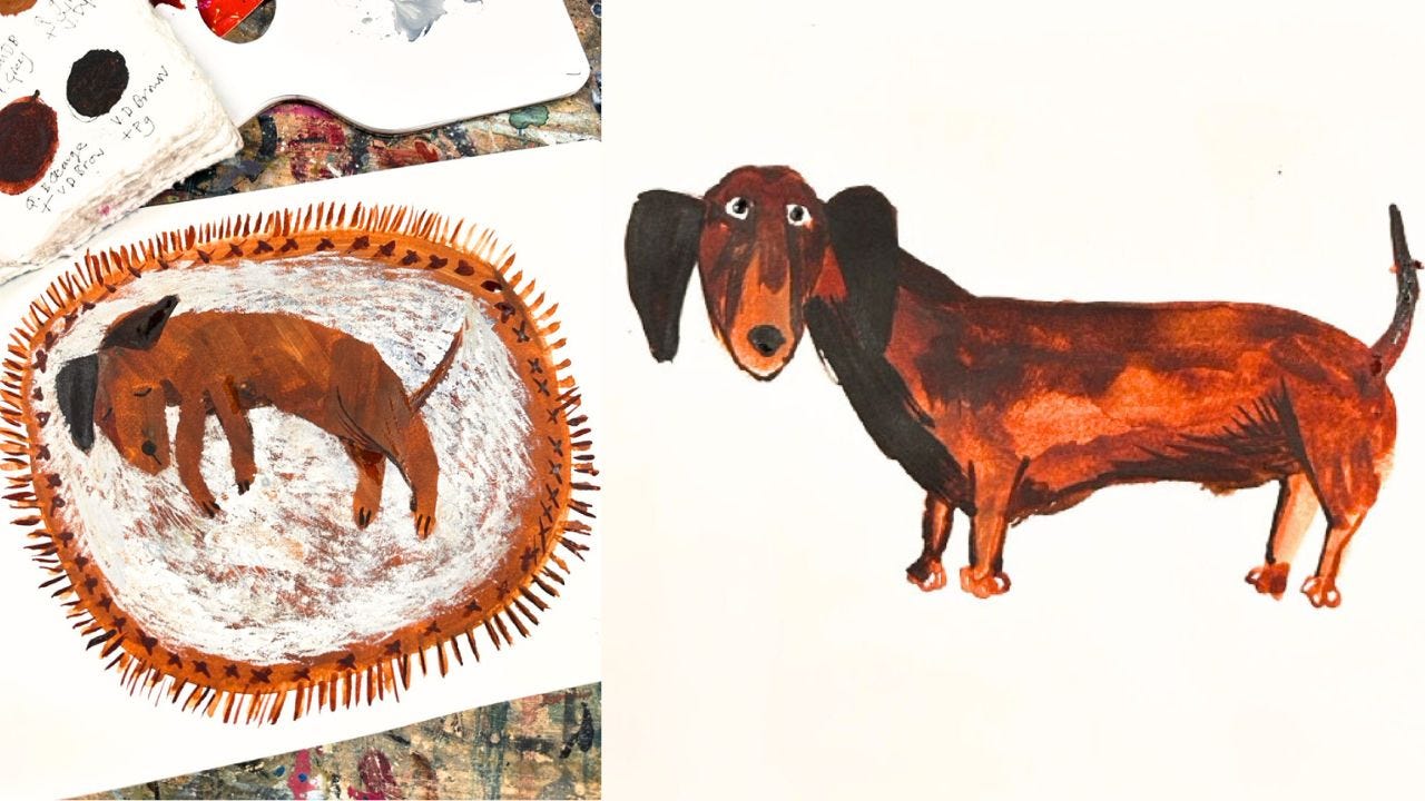 Here’s the two Dachshunds I ended up painting. Which one do you think was first? If you’re a full subscriber you can find out and see when I decided to carry on painting, changing the one into the other.