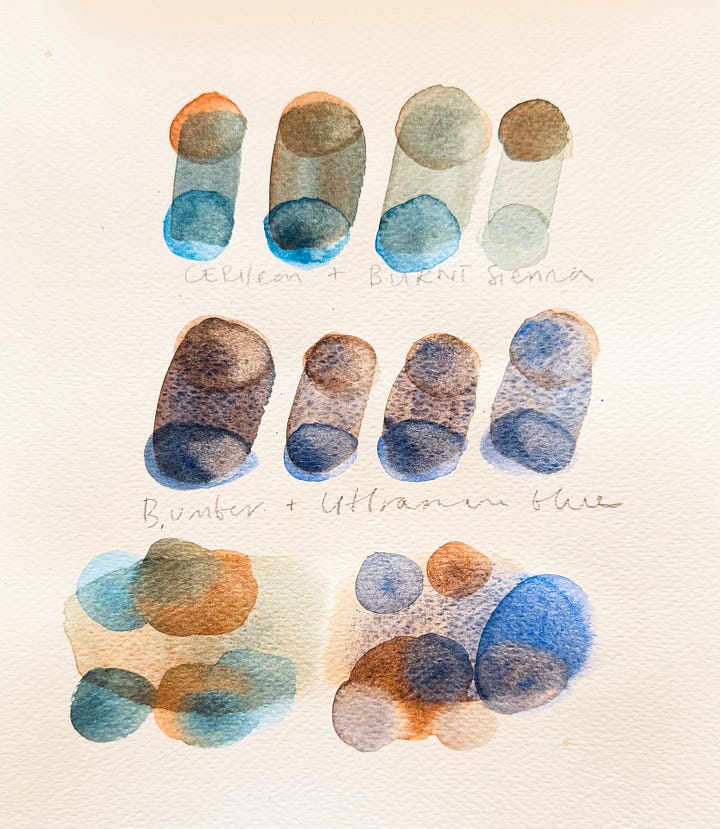 Week Seventeen is Cerulean Blue, Burnt Sienna, Burnt Umber & Ultramarine Blue