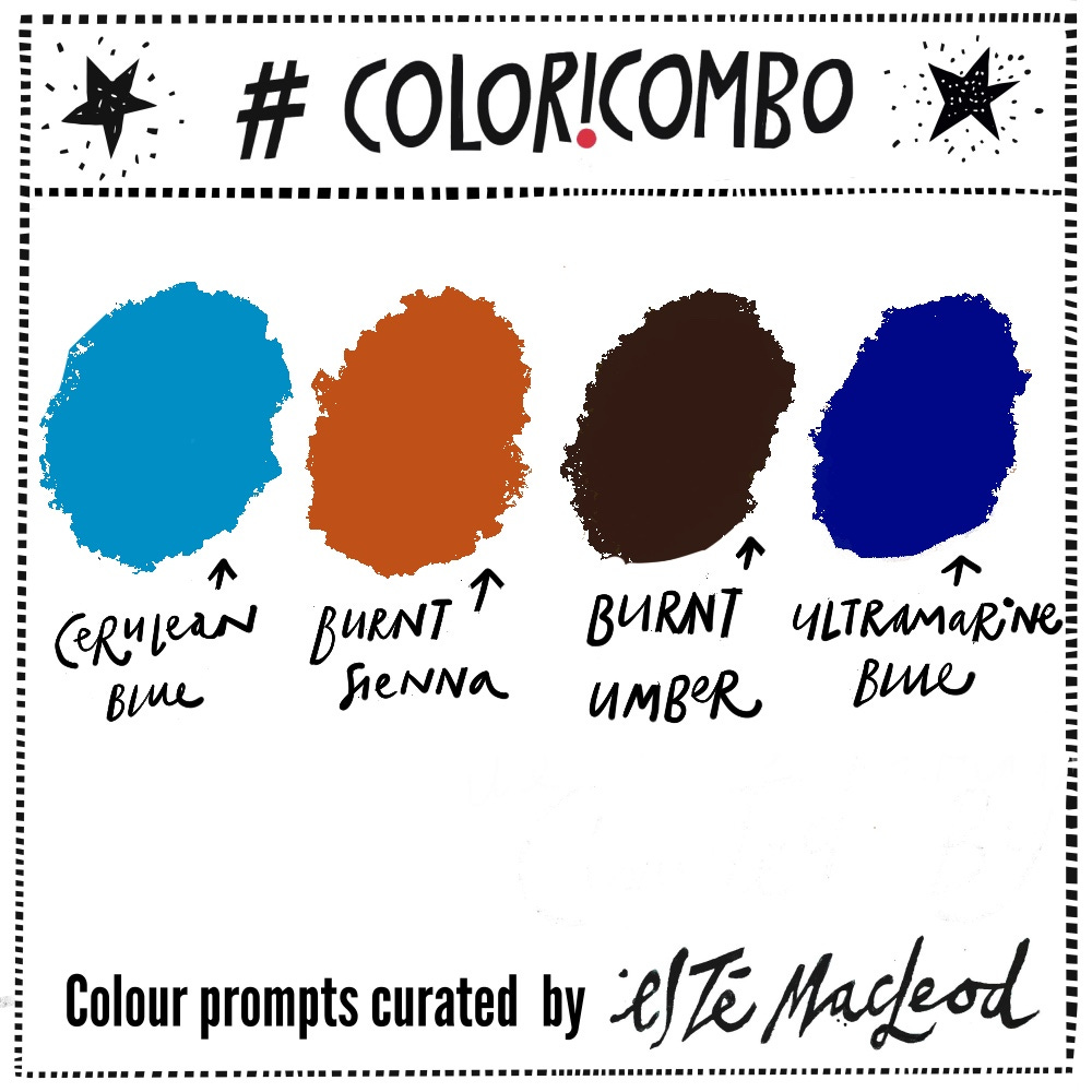 The colours this week are Cerulean Blue, Burnt Sienna, Burnt Umber & Ultramarine Blue. Use them along with a contrasting dark and neutral light colour to create an artwork in any medium or style. If you enjoy this weekly dollop of colour and creativity please share this post with others who might like them as well.