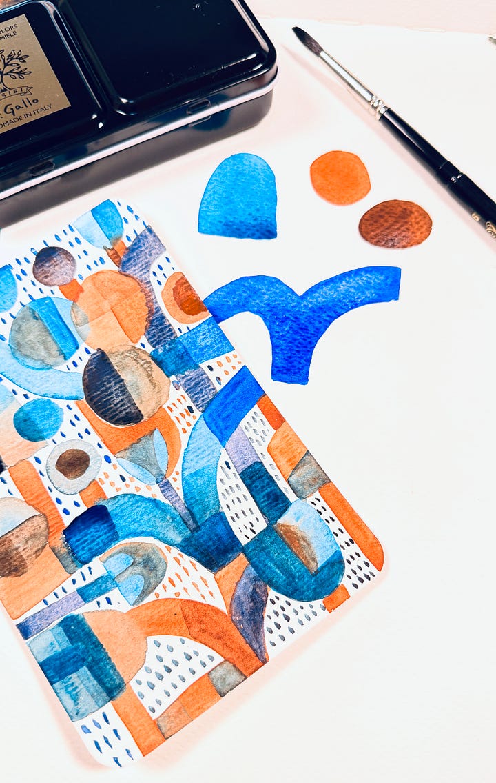 This week’s colours are picked from a watercolour painting on a postcard where I used combinations of browns and blues to mix my favourite hues for shading.