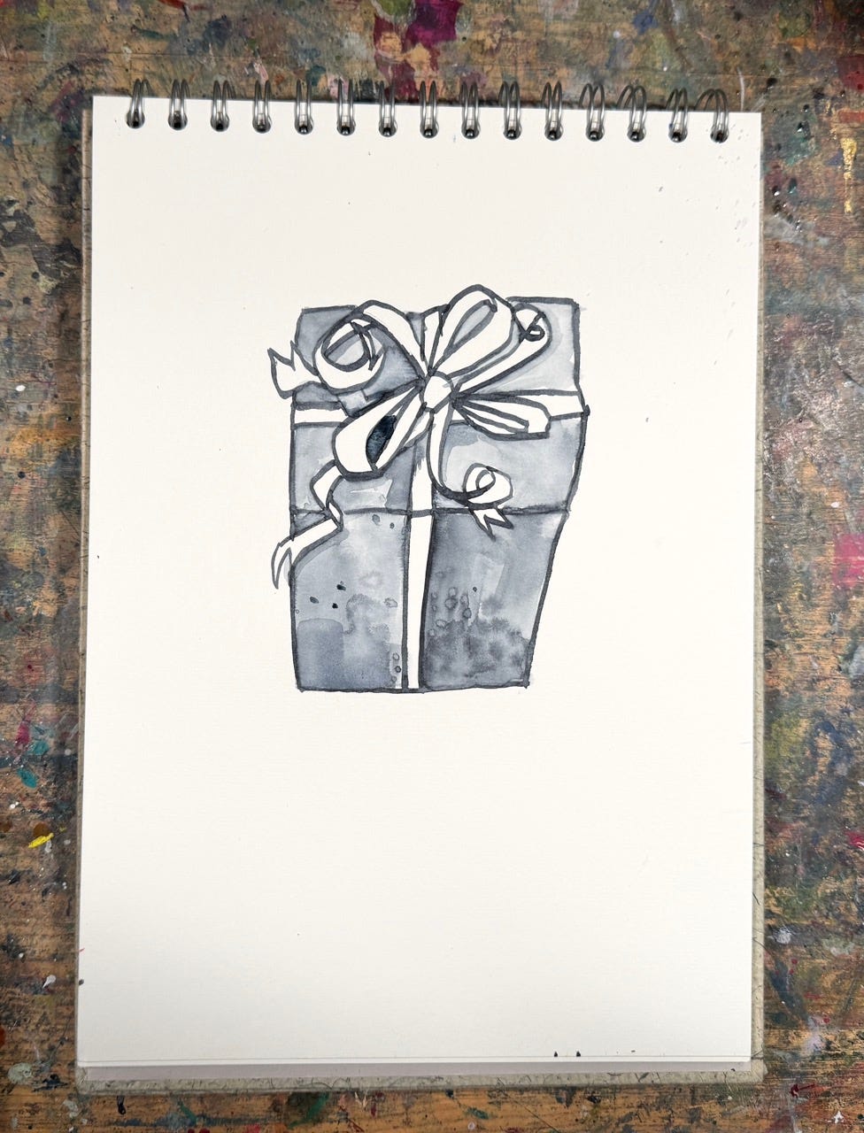 As part of the countdown I am making a simple drawing of a wrapped gift box, have a look at the video recording below.