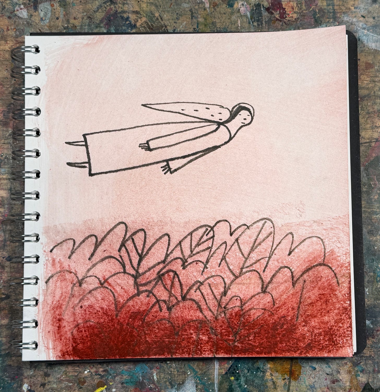 I use a compostable sponge to create a texture and used it today’s Number 3 drawing as well. You can see the short demo of the sketchbook drawing next.