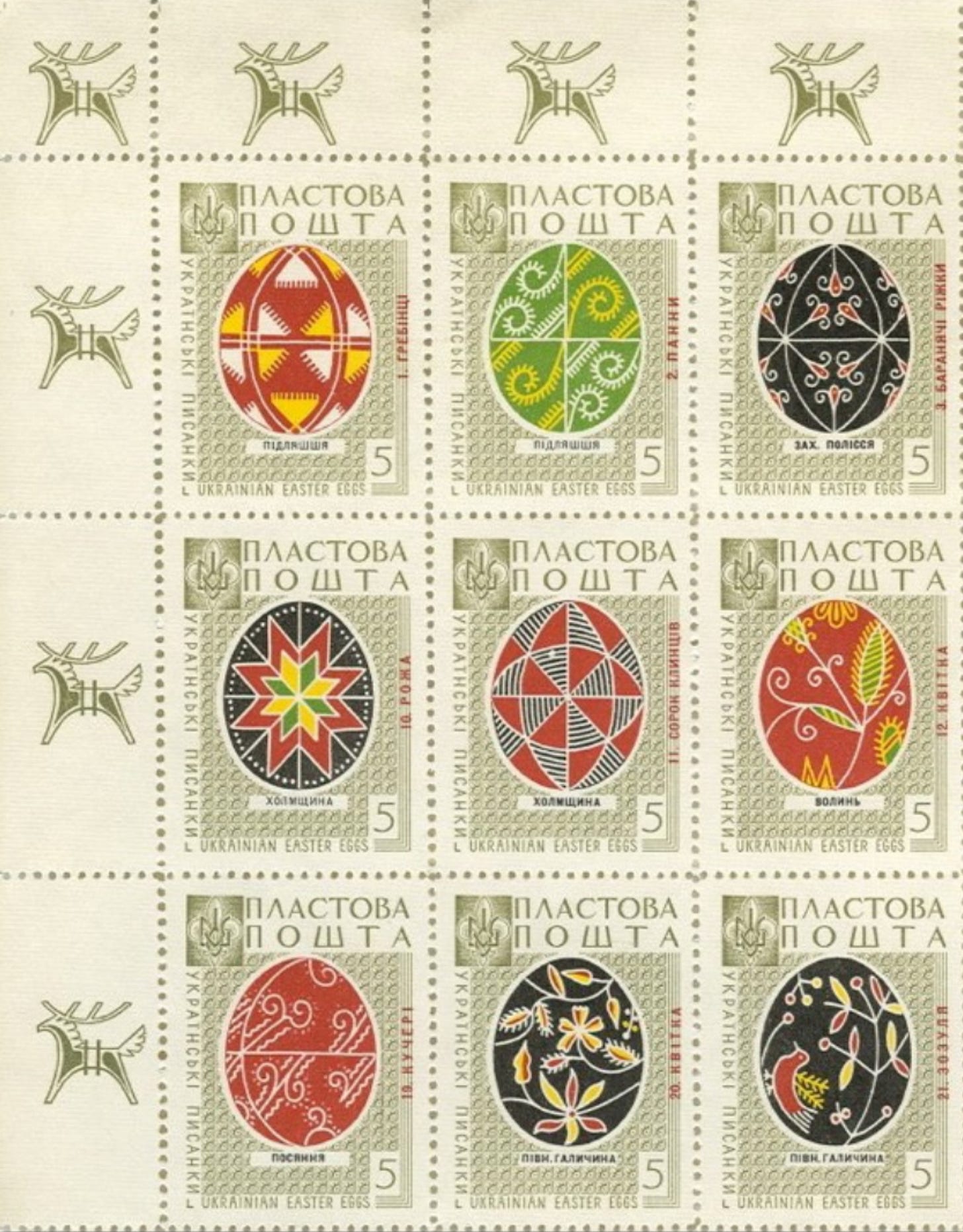 “Pysanky stamps’”, printed, Yaroslav Eliyev (pysanky) & Myron Lev (stamps), 1959