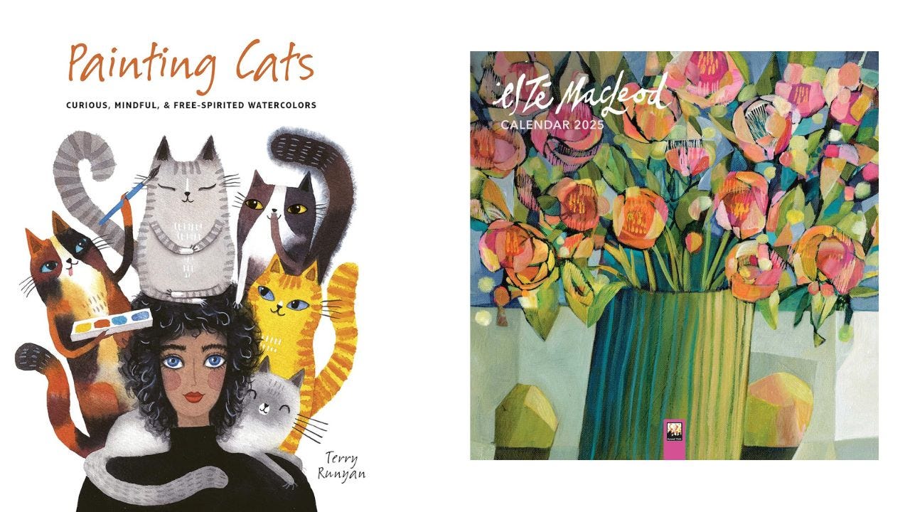 Our special co-host for November is the incredibly talented Terry Runyan whose adorable felines are instantly recognisable. There are three giveaways this month, including a copy of Terry’s watercolour book, Painting Cats and one of my 2025 calendars published by Flametree.