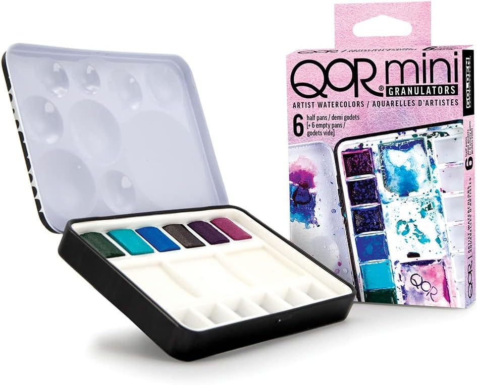 This is the first time I’ve used Golden’s QoR Watercolor Granulators Half Pan Set (the same kind as the set I’m giving away) so this week it’s more than a mixing demo, it’s also an introduction to the set.
