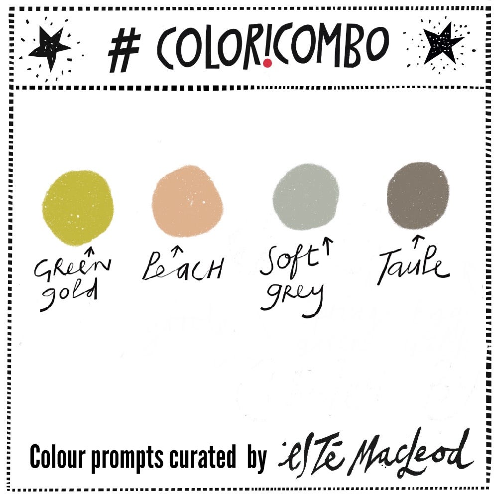 The colours this week are Green Gold, Peach, Soft Grey & Taupe. Use them along with a contrasting dark and neutral light colour to create an artwork in any medium or style. Share this post with someone who might enjoy a weekly dollop of colour and creativity.