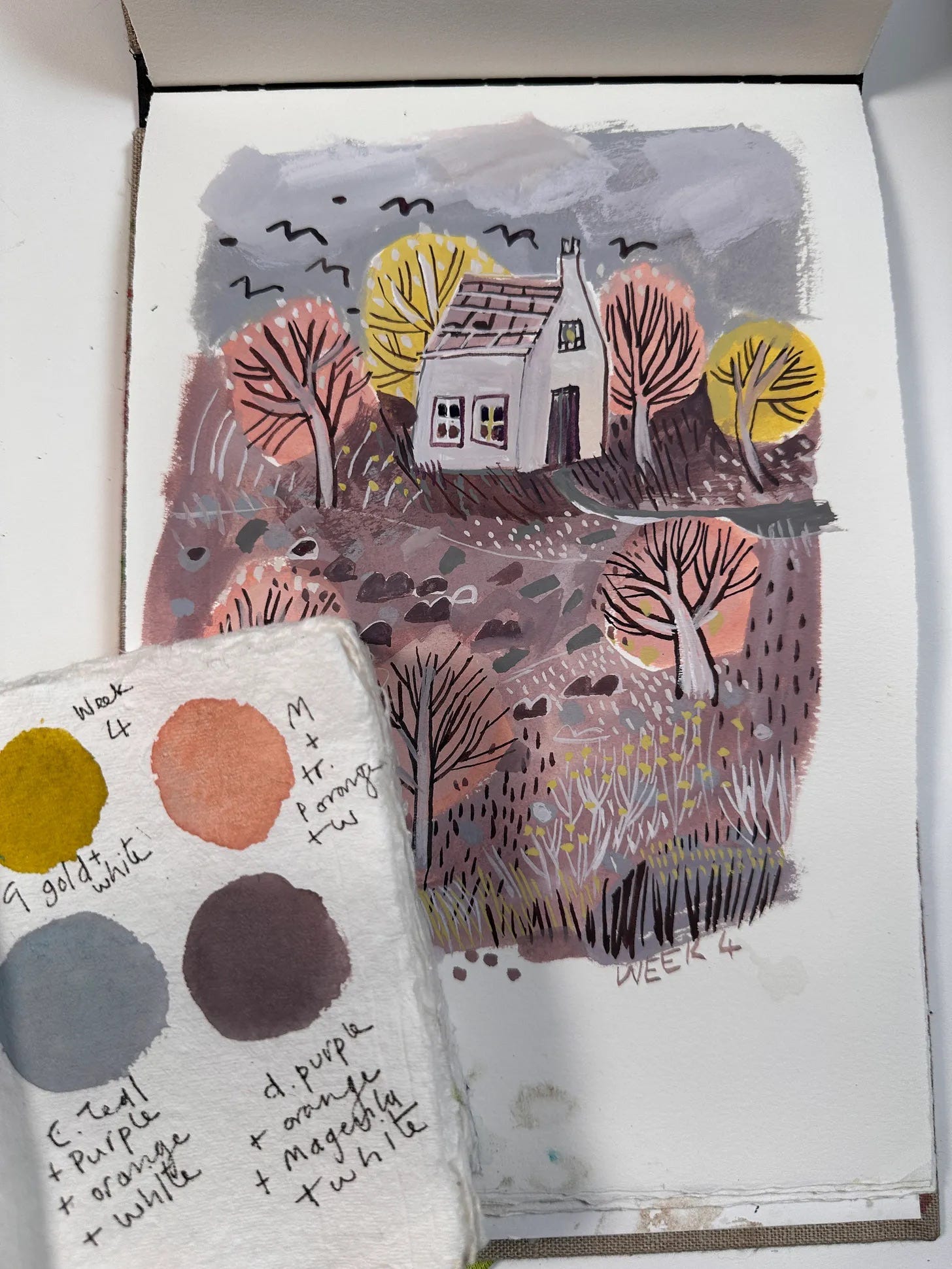Contributing subscribers have access to a fifteen minute demo where I show how High Chroma watercolours are mixed with Designer gouache to create the chosen colours.