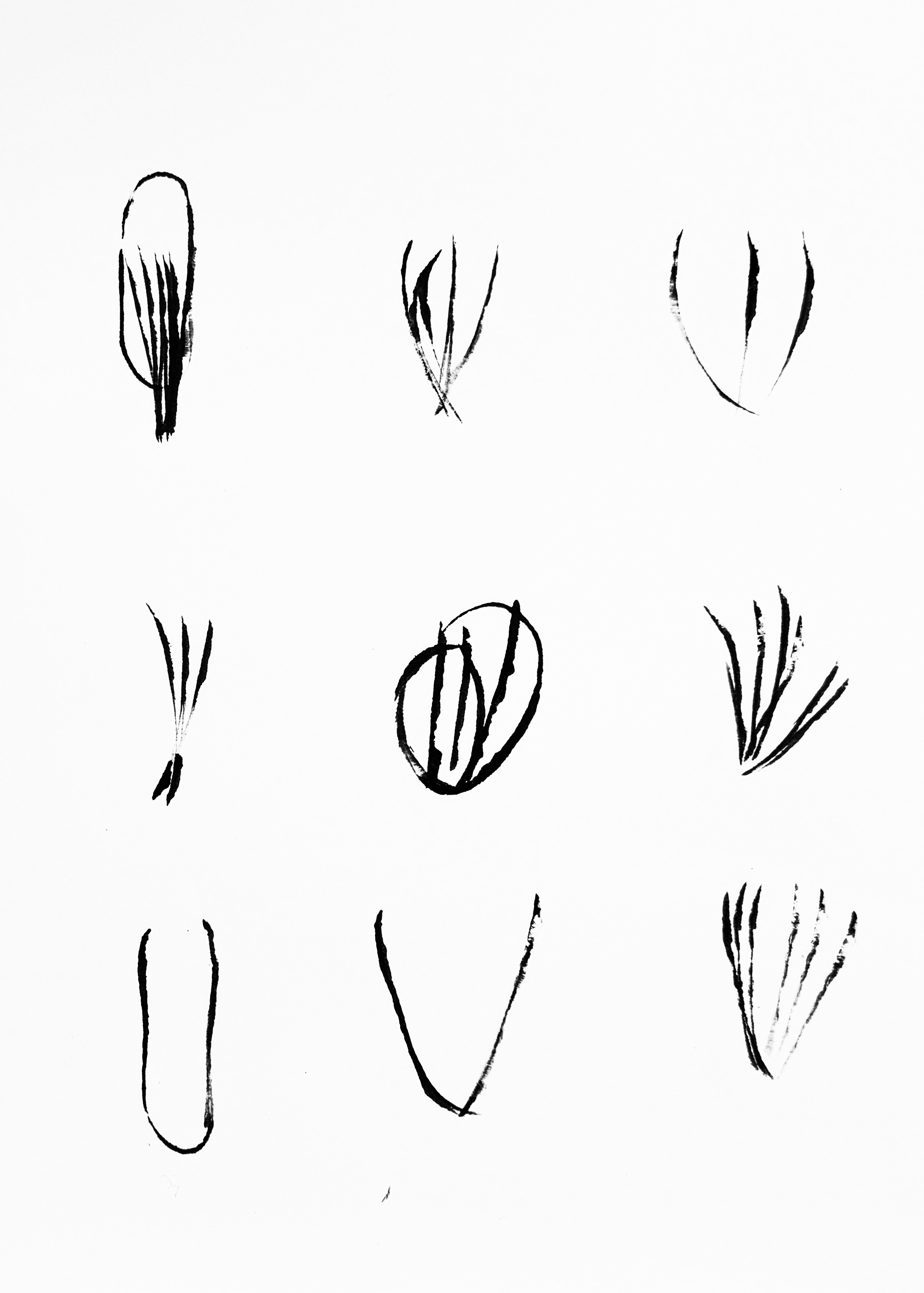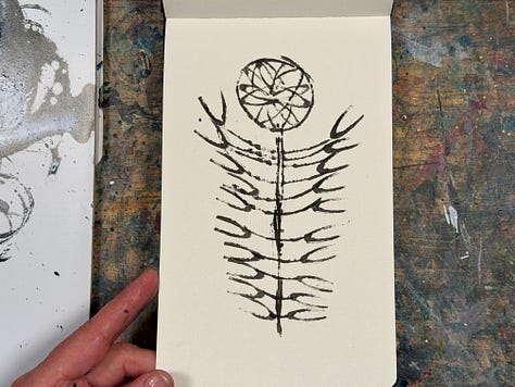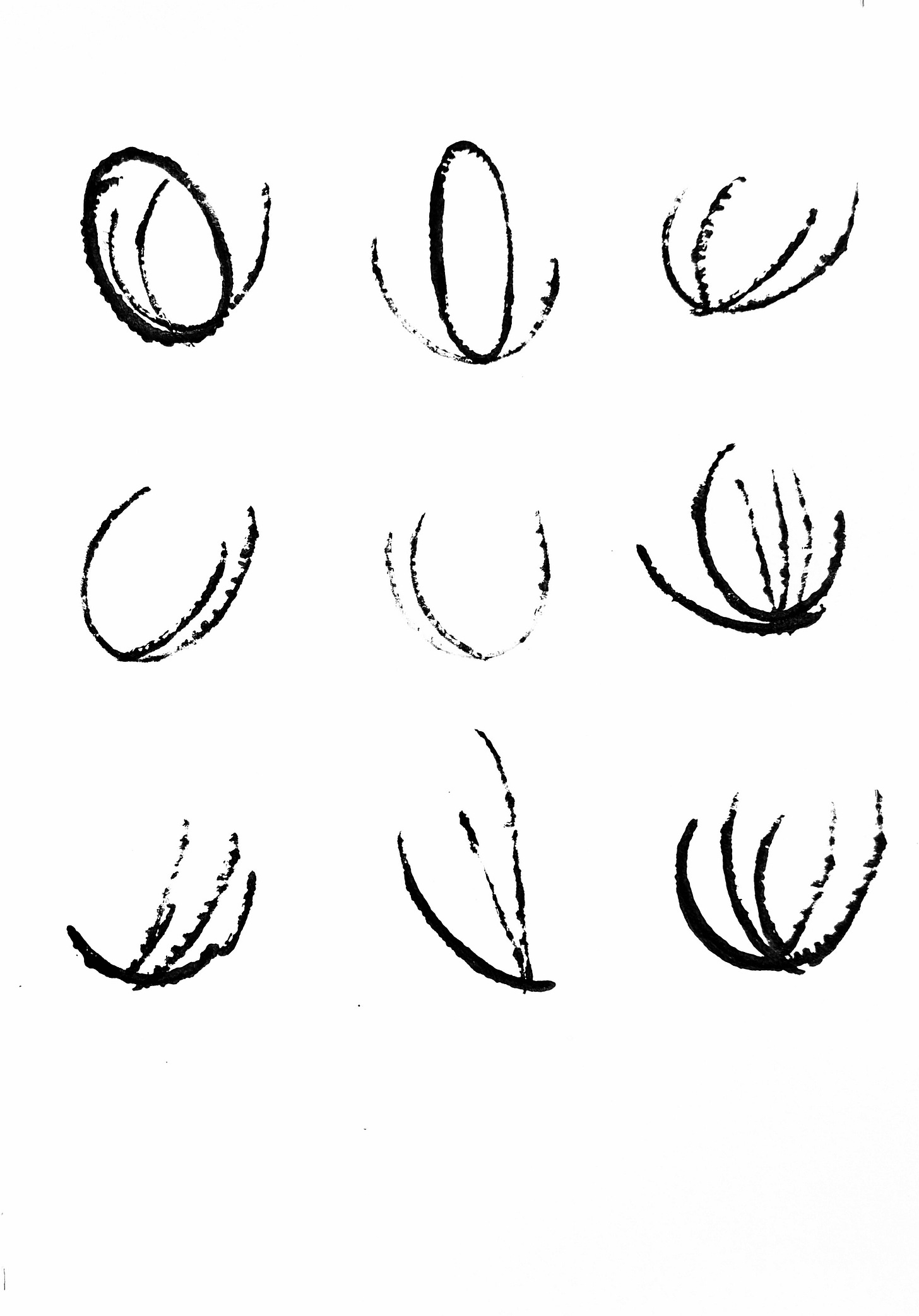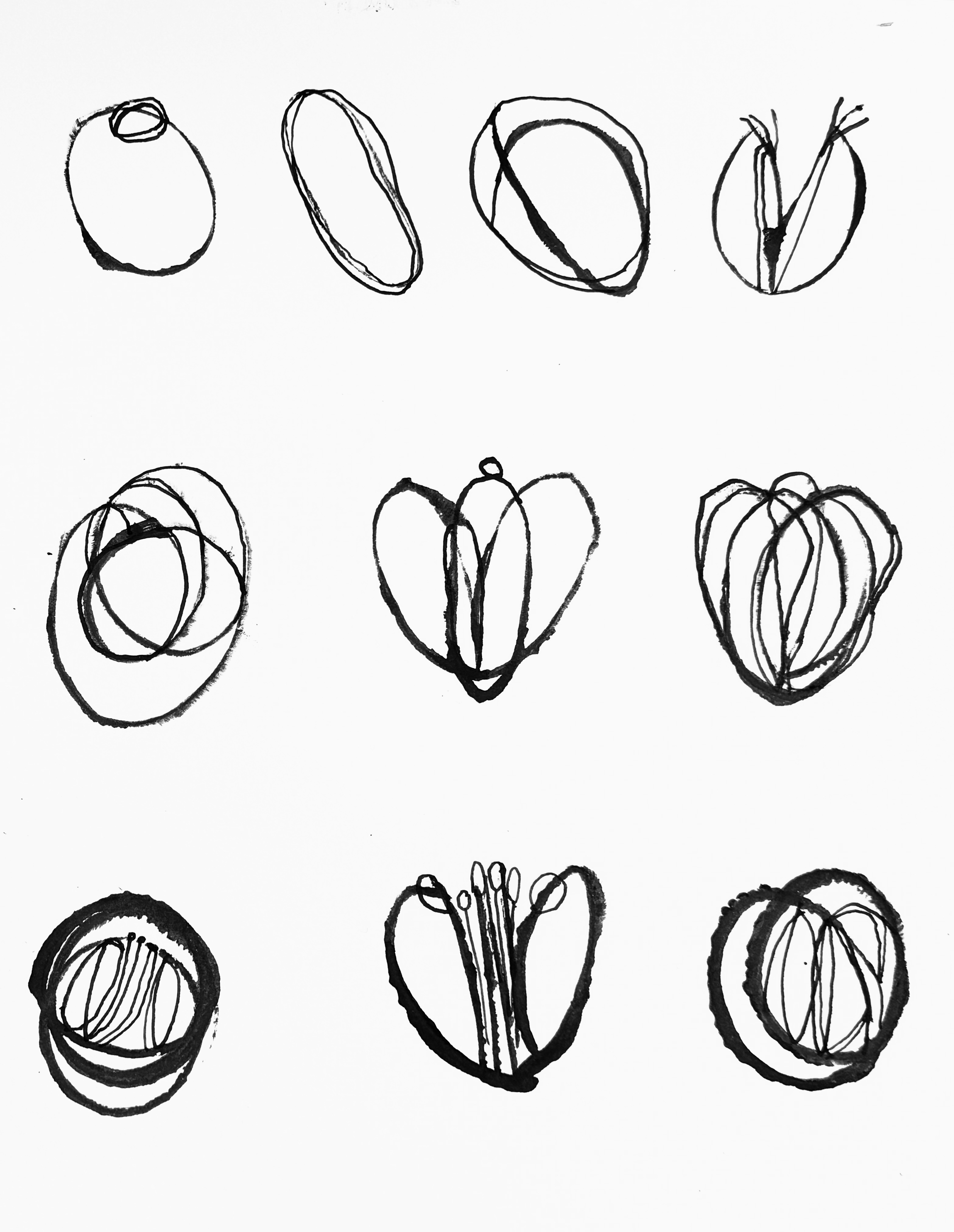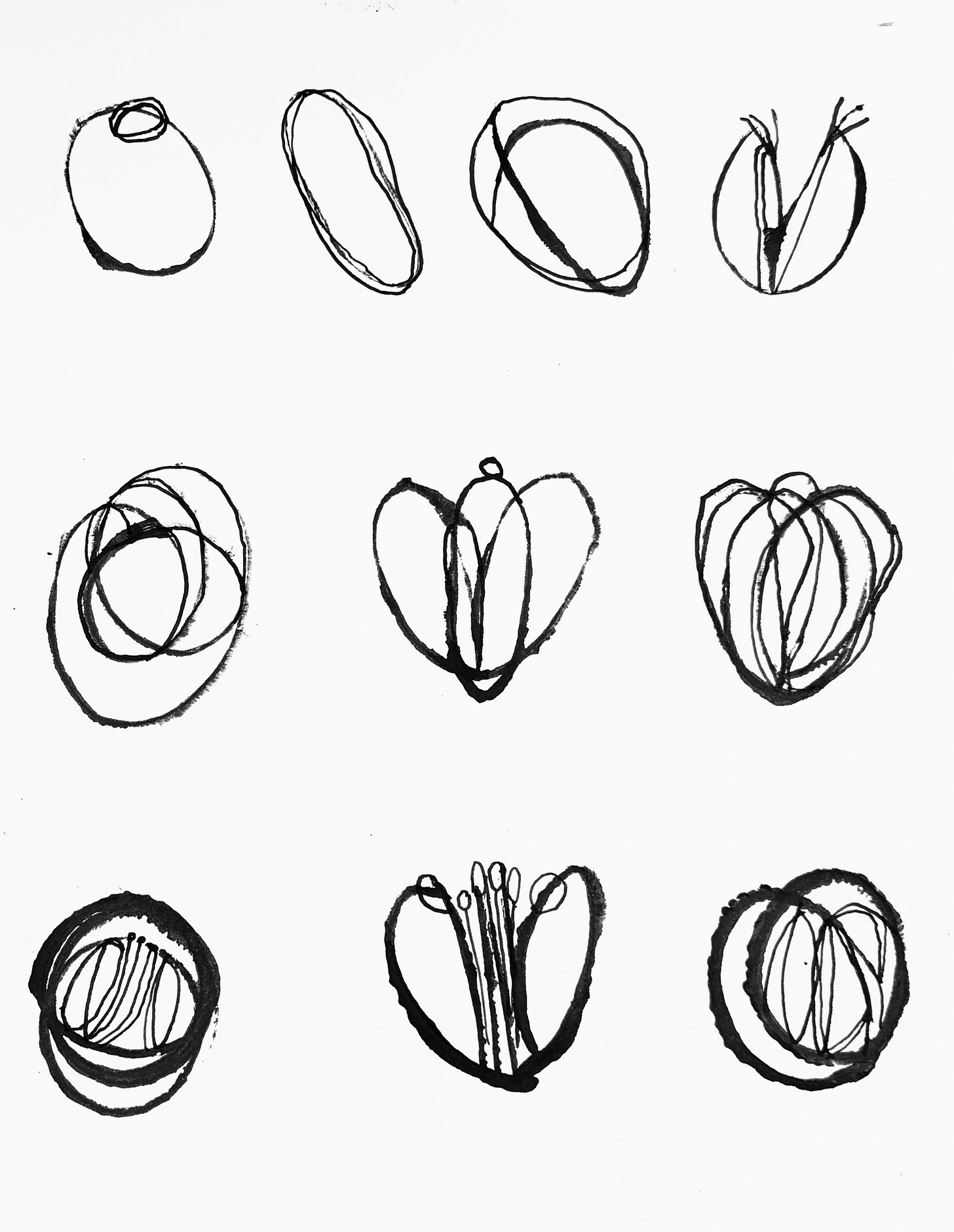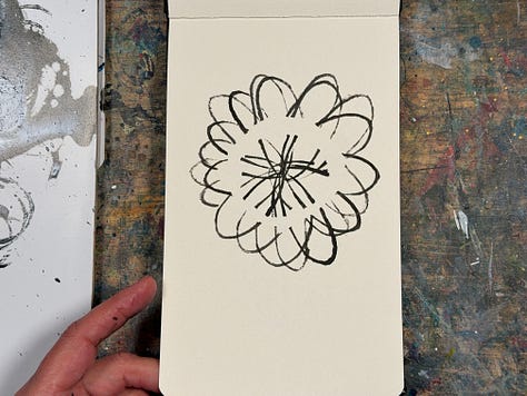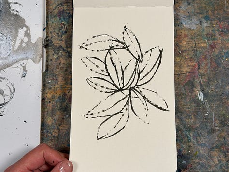 Examples of smaller sketchbook stamped florals. These basic shapes can be expanded upon later.