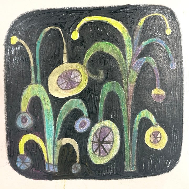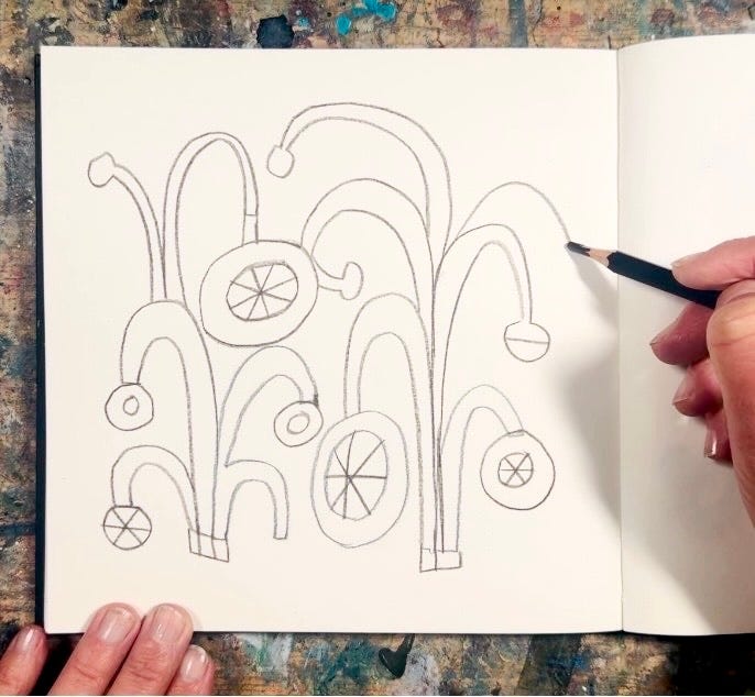 Sketchbook drawings using letter shapes