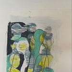 I used Golden’s QoR colours: Benz Yellow, Alizarin Crimson, Van Dyke Brown, Ultramarine Blue, Viridian Green and Paynes Grey along with Horadam Titanium white gouache.