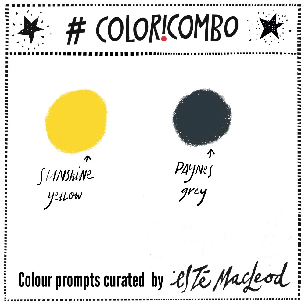 The chosen colours this week are Sunshine Yellow and Paynes Grey. Mix them up and use them together to create different olive greens and neutral colours, you can add black ink into the mix if you like for added contrast, see video below. Create an artwork in any medium or style.