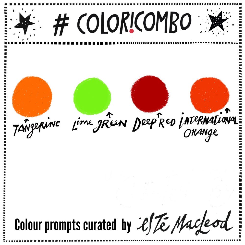 This week’s colours are Tangerine, Lime Green, Deep Red & International Orange. Use them together with neutral lights and darks to create an artwork in any medium or style.