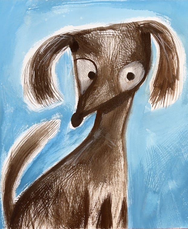 National Dog Day was on 26 August, I love dogs (and cats) so I used the colours of Week 35 to paint a cheeky little doggy, starting with a question mark shape. What shall we call her?
