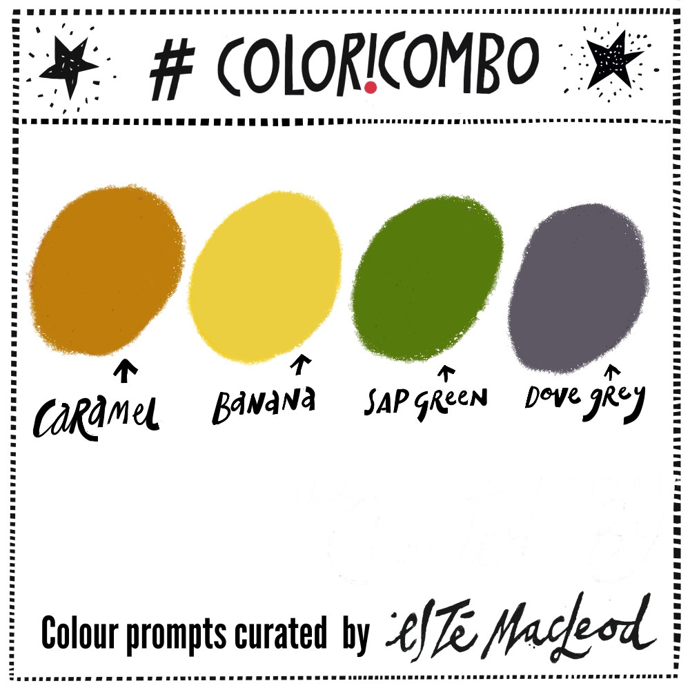 The colours this week are Caramel, Banana, Sap Green & Dove Grey. Use them along with a contrasting dark and neutral light colour to create an artwork in any medium or style. Share this post with someone who might enjoy a weekly dollop of colour and creativity.