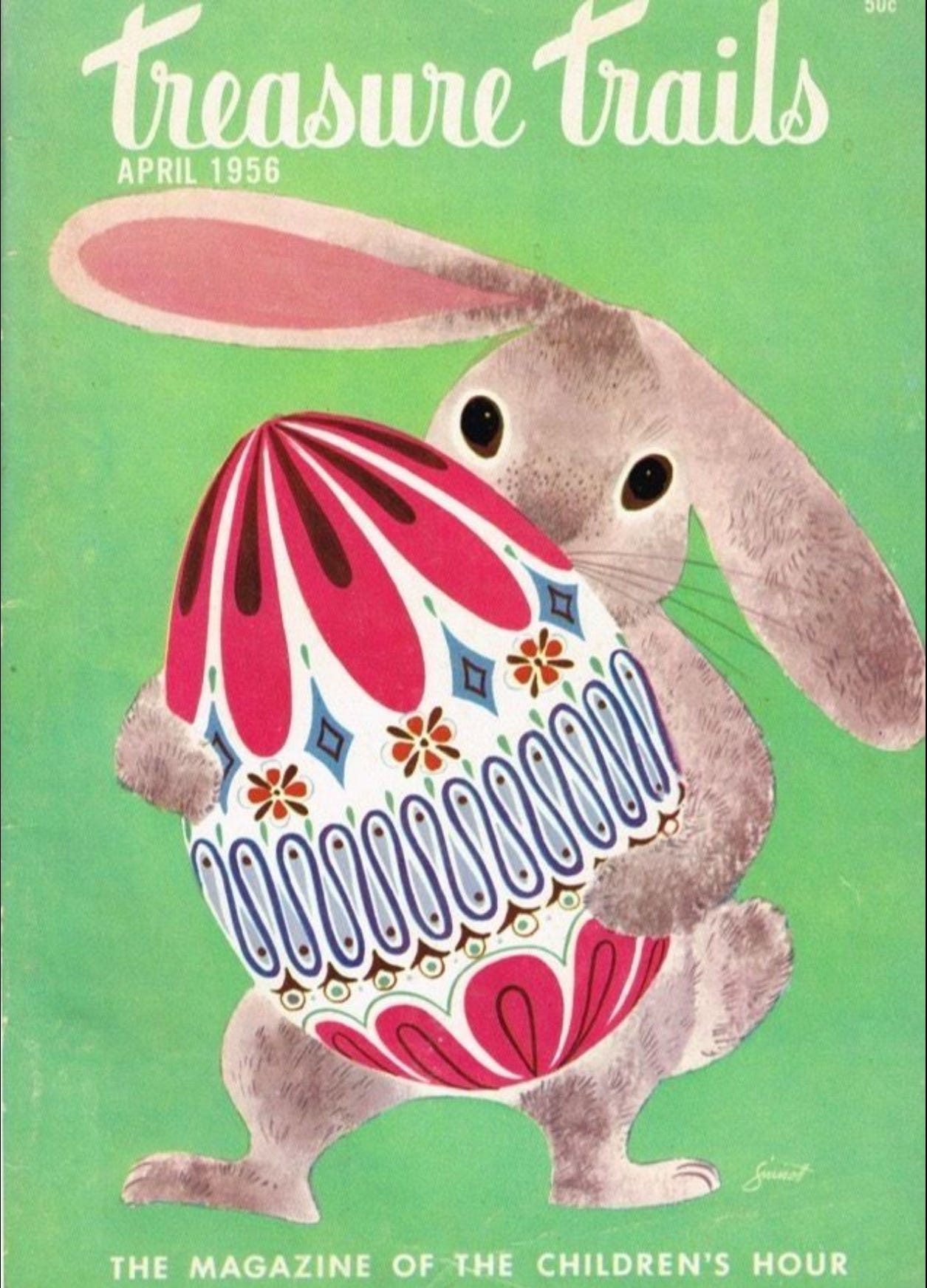 “Easter Bunny”, likely gouache, credited to Robert Sinnott, Treasure Trails, Crown Publishers, 1956